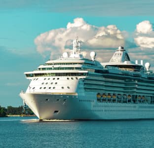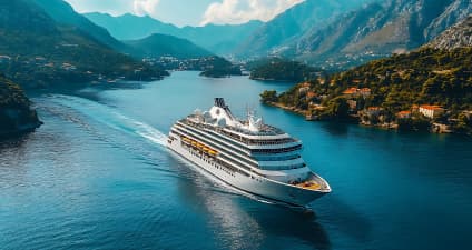 Popular routes include the Caribbean Islands, Mediterranean coasts, Alaskan glaciers.